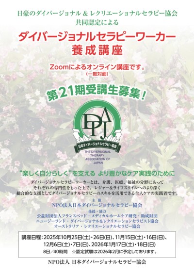 第21期 ダイバージョナルセラピー養成講座は